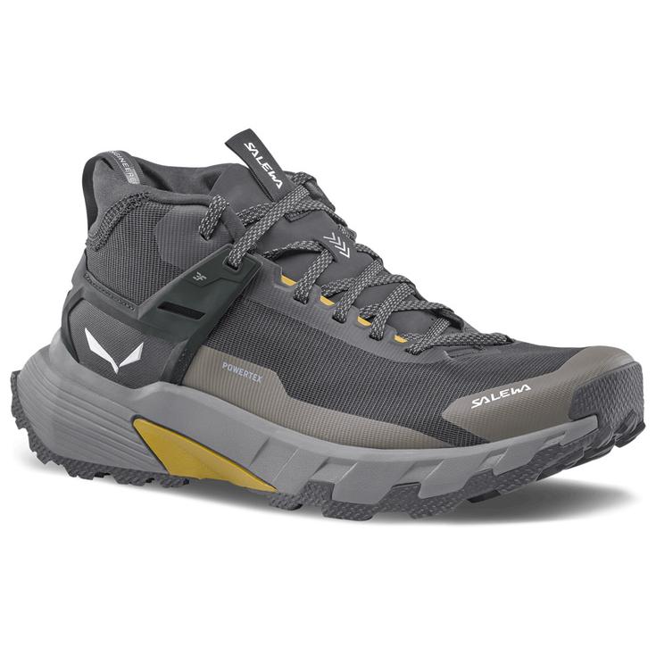Conçue pour les terrains techniques, la chaussure de fast hiking Salewa Pedroc 2 Mid Powertex M Black Out Bungee Cord stabilise la cheville tout en assurant une excellente tenue du pied.
