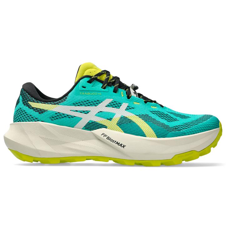 Les chaussures de trail Asics Trabuco 14 Aurora Green Light Dust offrent stabilité, confort et adhérence optimale pour courir sur tous les terrains.